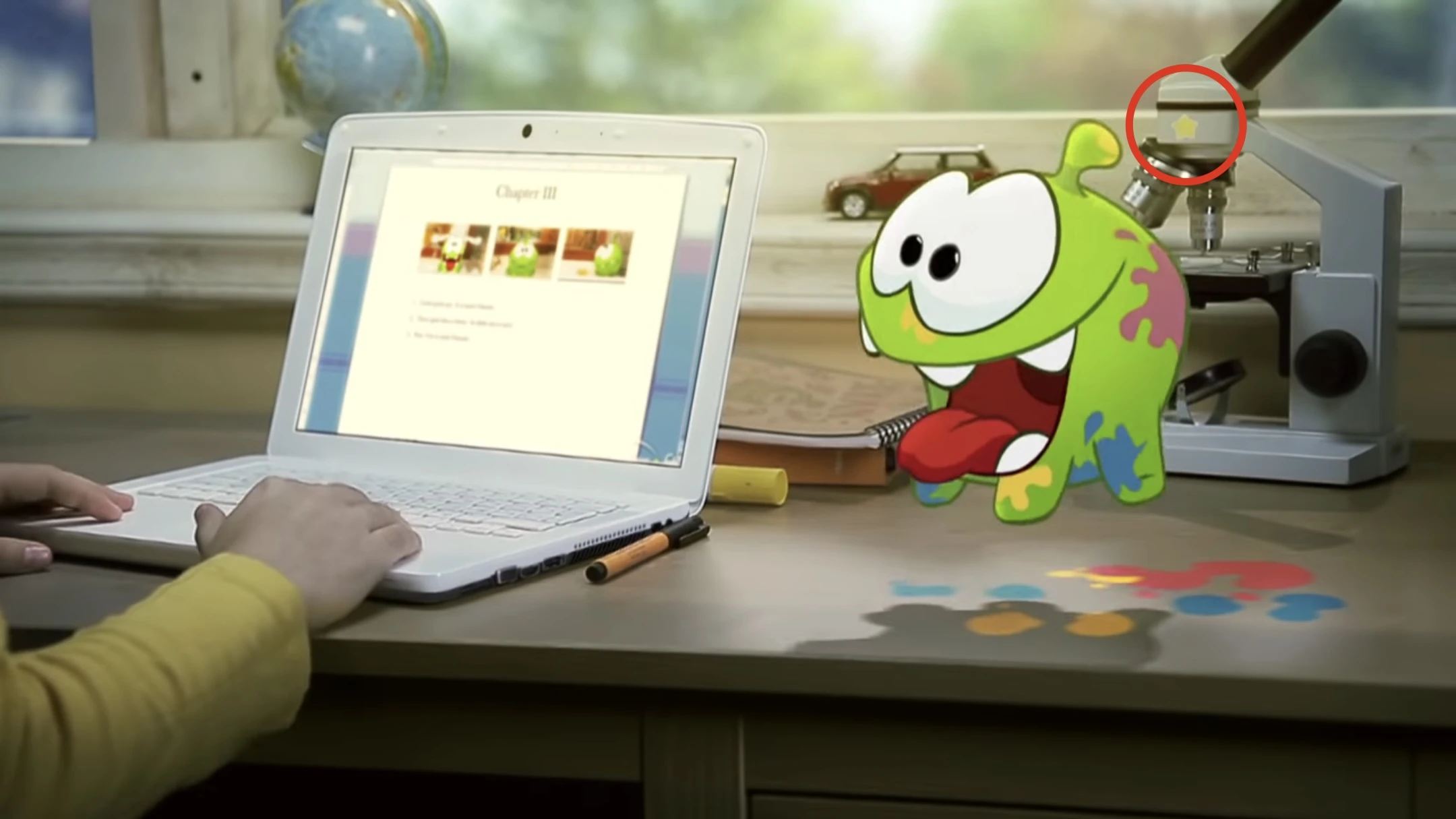 The hidden star in the video is found on the microscope in the scene where Evan is typing on his laptop (at 1:08).
